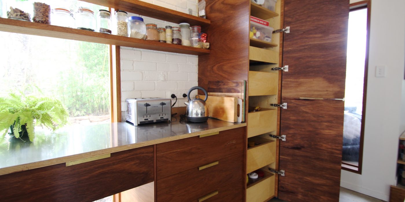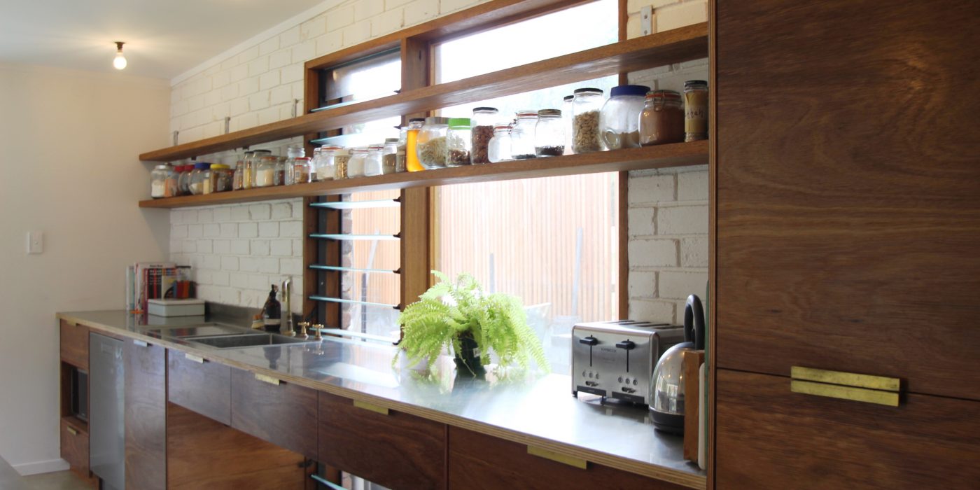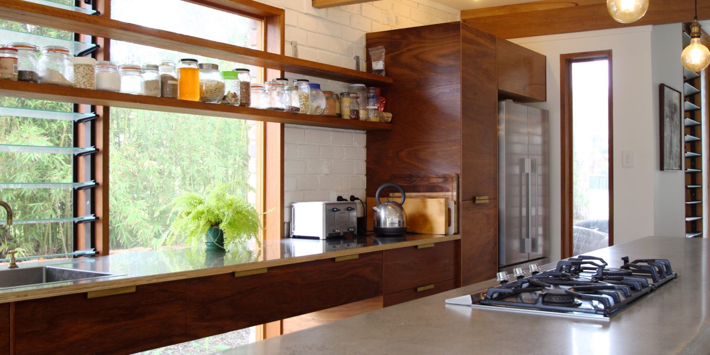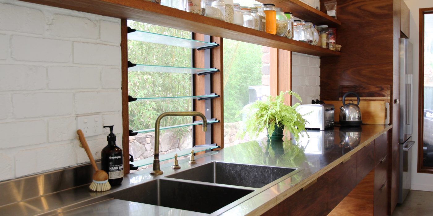 Original elements of brick, timber and concrete have been used as a corner post for the homely yet industrial feel of this unique home. This renovation is the perfect blend of embracing the old and integrating the new. The open shelving, brass hardware and tapware as well as the use of Edison globes compliments the home’s earthy elements perfectly.