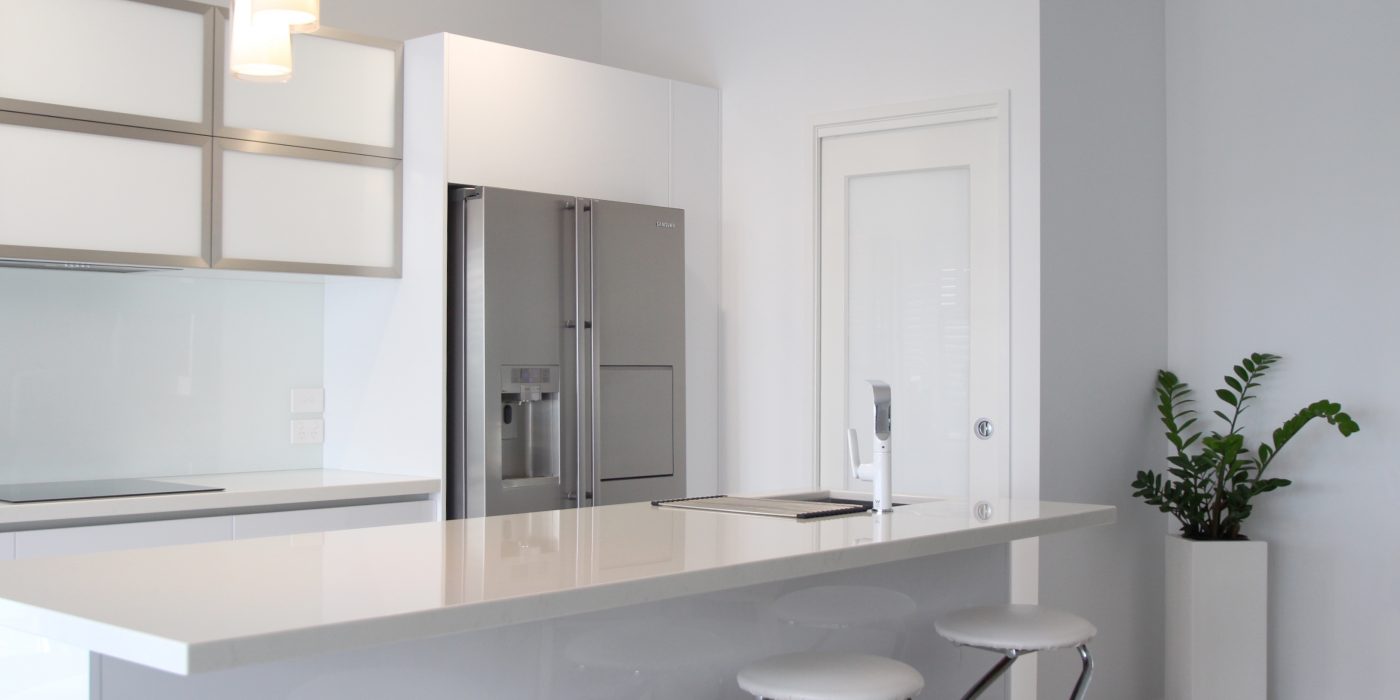• Benchtop 40mm Carola White Quartz, Natural Series, supplied by owner